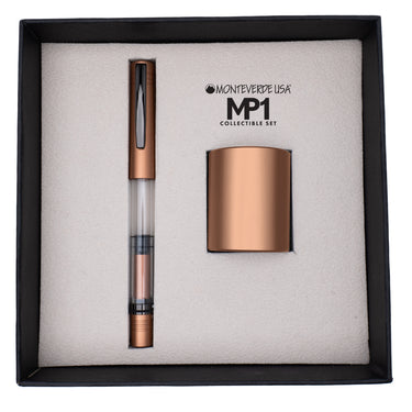 Crafted to perfectly complement the Monteverde MP1 Piston Fountain Pen, this solid aluminum cylinder pen holder combines functionality with modern elegance. Precision-machined from a single block of durable aluminum, the holder features a sleek, minimalist silhouette enhanced by an anodized finish that resists scratches, fingerprints, and everyday wear while offering a smooth, satin texture. Designed for a precise fit, the upright holder securely cradles the MP1 pen, keeping it easily accessible while showcasing its refined form. A weighted base ensures excellent stability to prevent tipping, and the interior is carefully sized to protect the pen’s finish. Subtle branding details include the Monteverde logo tastefully engraved on the bottom of the cylinder, offering a discreet mark of authenticity without distracting from the clean design. A sophisticated desktop accessory, this pen holder reflects the same craftsmanship and attention to detail as the Monteverde MP1 pen collection.