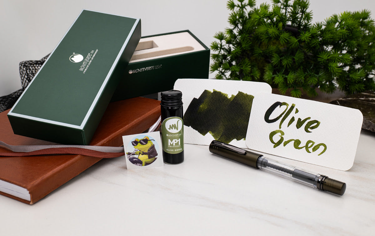 Monteverde USA® MP1 Collectible Lock-It Piston Technology Olive Green Fountain Pen + 15ml Ink Set