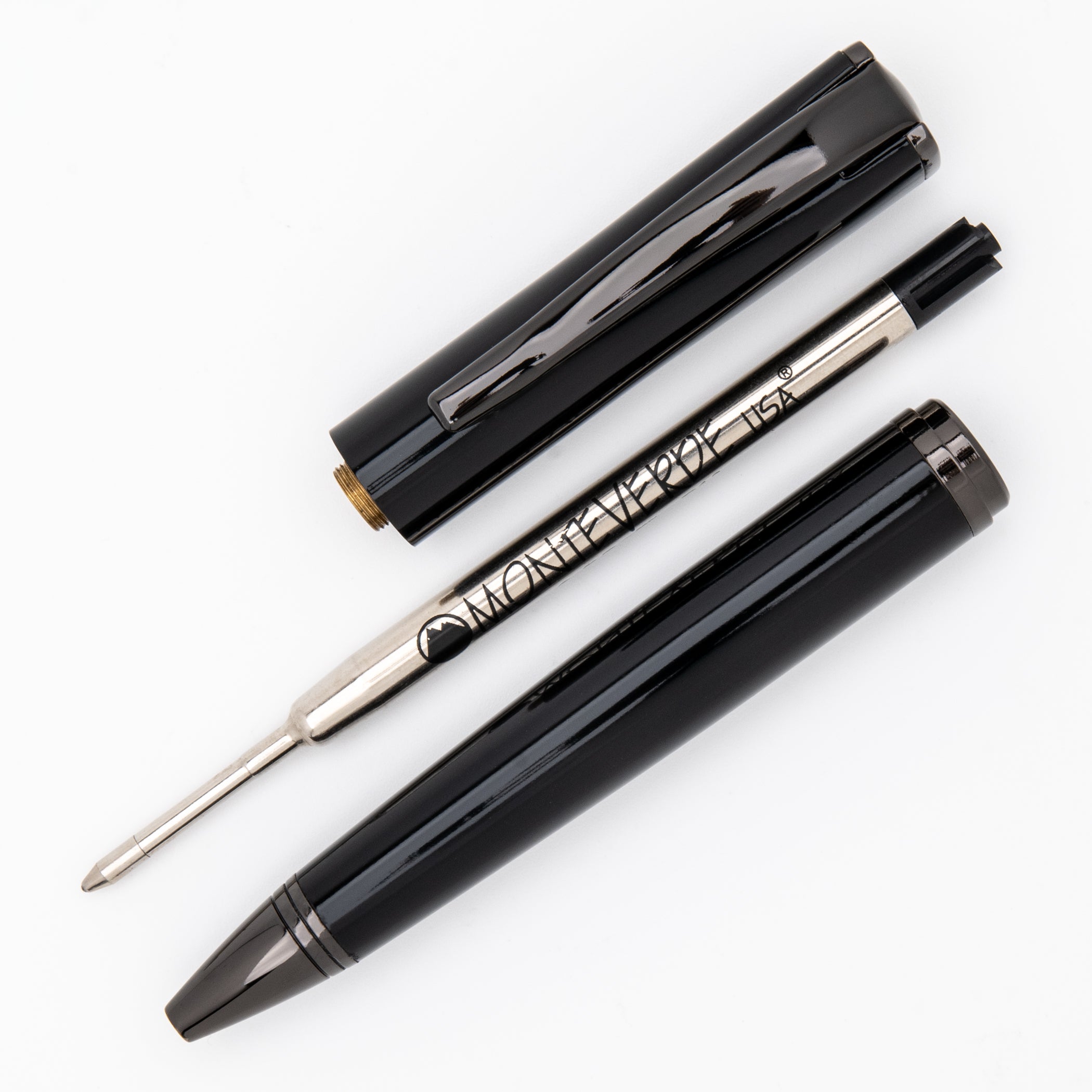 Fountain pen fills with Monteverde® standard international G3 ink cartridges or piston ink converter (included). Ballpoint accepts P1 and P4 refills and the capped rollerball accepts the G2 and W2 refills.