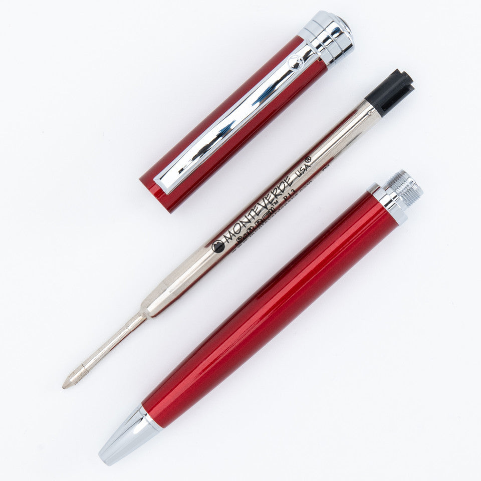 The Monteverde USA Strata Ballpoint Pen in Red brings a bold and striking look to a classic writing design. The bright red lacquer finish stands out instantly, complemented by chrome trim for a clean and elegant contrast. The smooth twist-action mechanism ensures consistent, effortless writing, ideal for journaling, note-taking, and everyday tasks. Designed for comfort and reliability, the Strata is lightweight, balanced, and fully refillable. Its vibrant color and timeless aesthetic make it an excellent gift for students, professionals, and pen enthusiasts who enjoy writing tools with personality. This pen combines style, simplicity, and dependable performance.